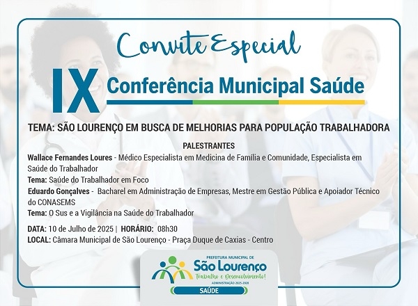 A Prefeitura de São Lourenço convida toda a população para a IX Conferência Municipal de Saúde