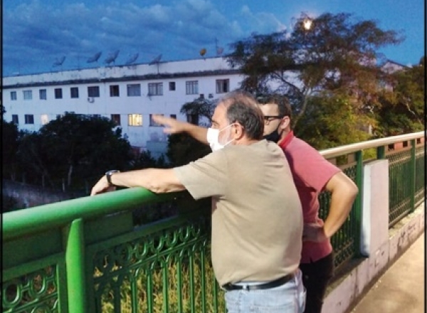 Na ponte da Estação, o prefeito e seu gerente de convênios Eduardo Rodrigues estudam maneiras para captar os devidos recursos para os investimentos necessários.