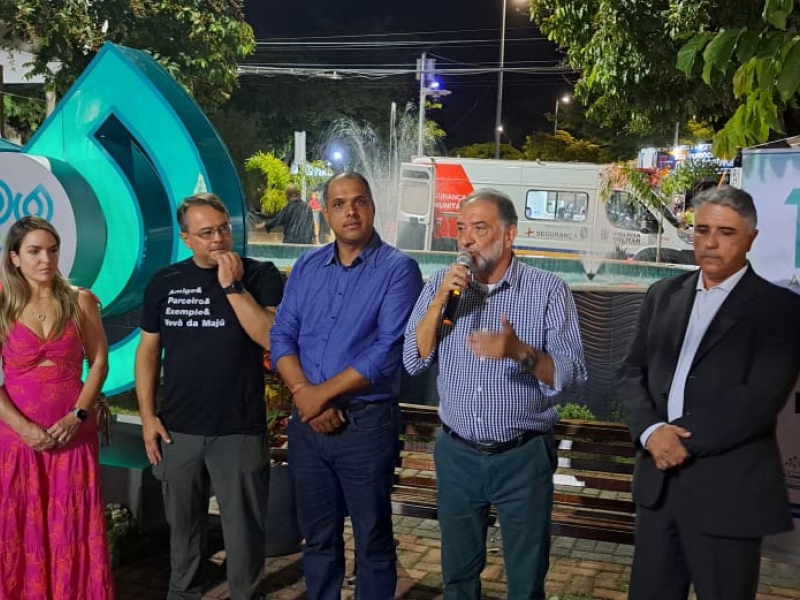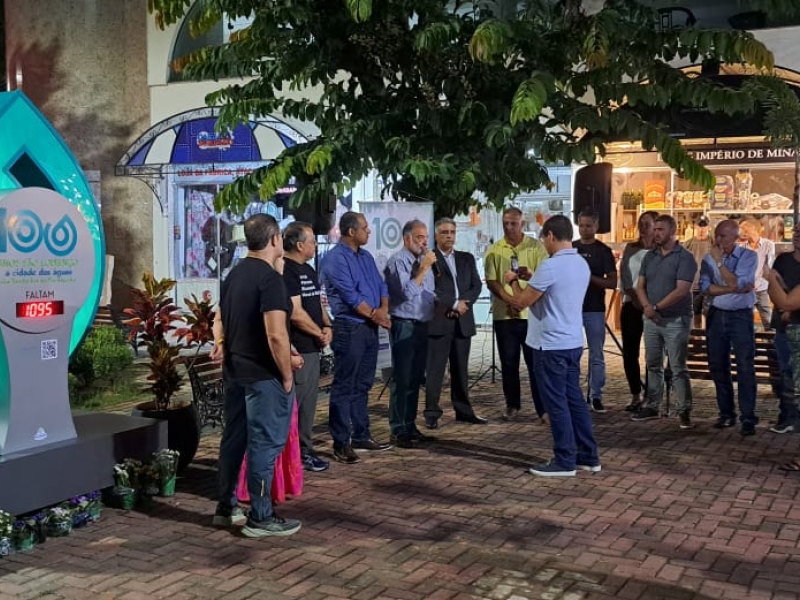 instalado no Calçadão um totem comemorativo - um relógio especial que marca