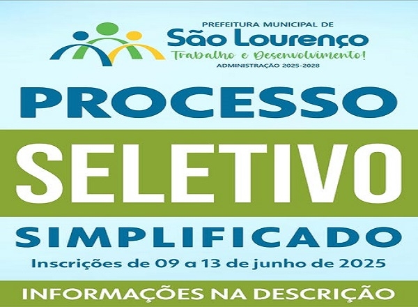 A Prefeitura Municipal de São Lourenço informa a abertura de Processo Seletivo Simplificado para contratação temporária de profissionais para atuação em diversas Secretarias Municipais.