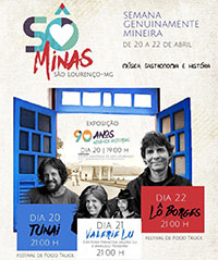 A Prefeitura de São Lourenço, através da Secretaria de Turismo e Cultura está promovendo o Festival Sô Minas que vai acontecer entre os dias 20 e 22 de Abril no Calçadão Silvério Sanches Neto. O Festival vai trazer música, gastronomia, história e entretenimento durante todo o feriado.